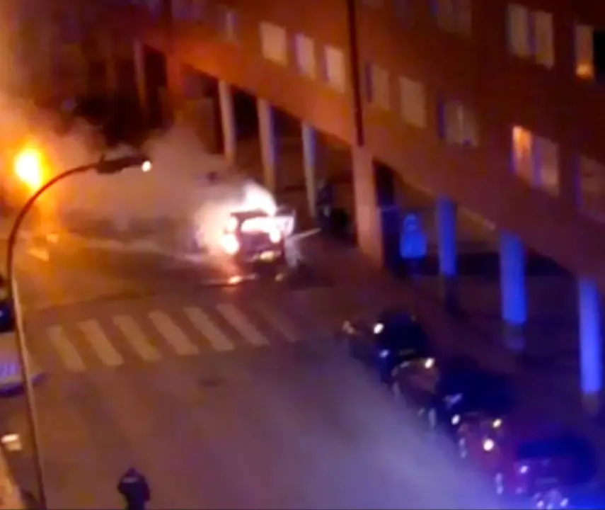 Un vecino de la zona nos envía un vídeo que ha podido grabar desde su terraza en el que se puede ver el coche envuelto en llamas mientras los Bomberos de la Comunidad de Madrid tratan de sofocarlo. Ver vídeo: