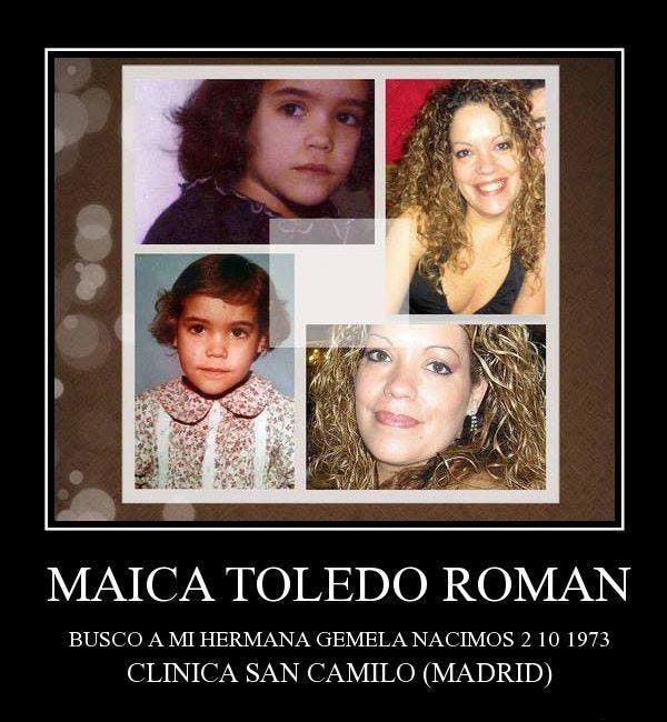 Maica Toledo Román tiene 44 años y lleva muchos años de su vida dedicados a buscar a su hermana gemela. Su familia está convencida de que se trata de uno de los muchos casos de niños robados.