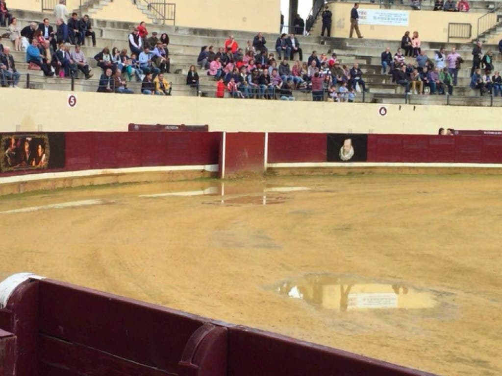 A las seis y cuarto de la tarde, y ante la imposibilidad de eliminar los charcos que habían convertido en una piscina el coso de la ciudad complutense, los toreros de común acuerdo con la autoridad competente han decido suspender el festejo, por el alto riesgo que conllevaría llevarlo a cabo.