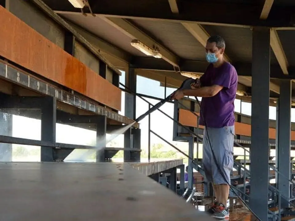 El regreso de los toros a Alcalá llega marcado por las medidas de seguridad del Covid-19, por lo que los organizadores quieren que ésta sea una corrida segura y libre de brotes. Para ello, durante esta semana se están desinfectando todos los rincones de la plaza: tendidos, gradas, pasillos y aquellos lugares por donde pasarán los aficionados, así como los elementos que pudieran tocar.