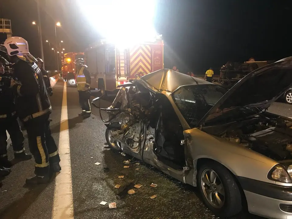El suceso se ha producido sobre las 23.12 horas cuando un camión ha colisionado contra tres turismos, por causas que están siendo investigadas.