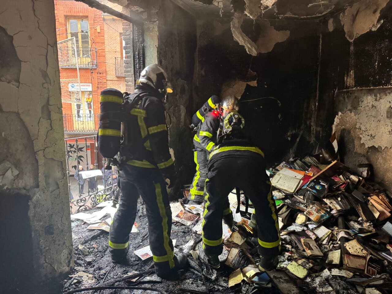 El salón de la vivienda ha quedado afectado por completo por las llamas y el resto de la vivienda por el humo, al igual que todo el edificio. Además, el fuego se había propagado por la fachada a la vivienda superior afectando a los balcones.