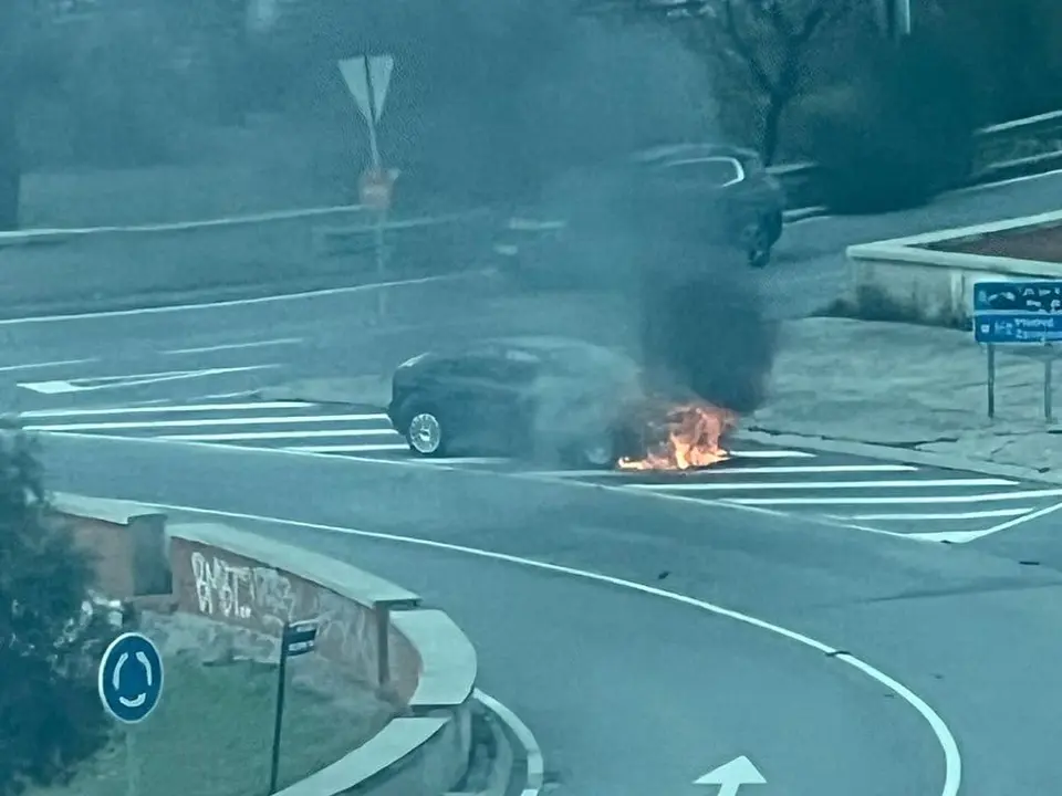Un coche ha salido ardiendo este lunes en la rotonda del Corte Inglés de Alcalá de Henares, como se puede ver en las imágenes cedidas a MiraCorredor.