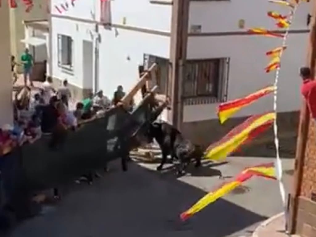 Uno de los toros destrozó una talanquera de madera donde estaban encaramados varios vecinos y se coló en una calle aledaña al recorrido. El animal embistió contra varias personas que habían quedado sin ningún tipo de defensa.