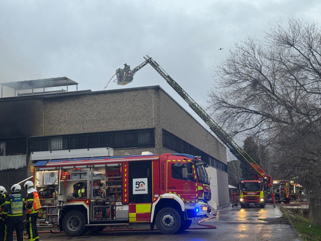 El 112 ha recibido el aviso a las 8 de la mañana y hasta el lugar se han desplazado 12 dotaciones de los Bomberos de la Comunidad de Madrid, que han trabajado en la extinción del fuego y han logrado confinarlo para evitar que se extendiera a otras naves aledañas.