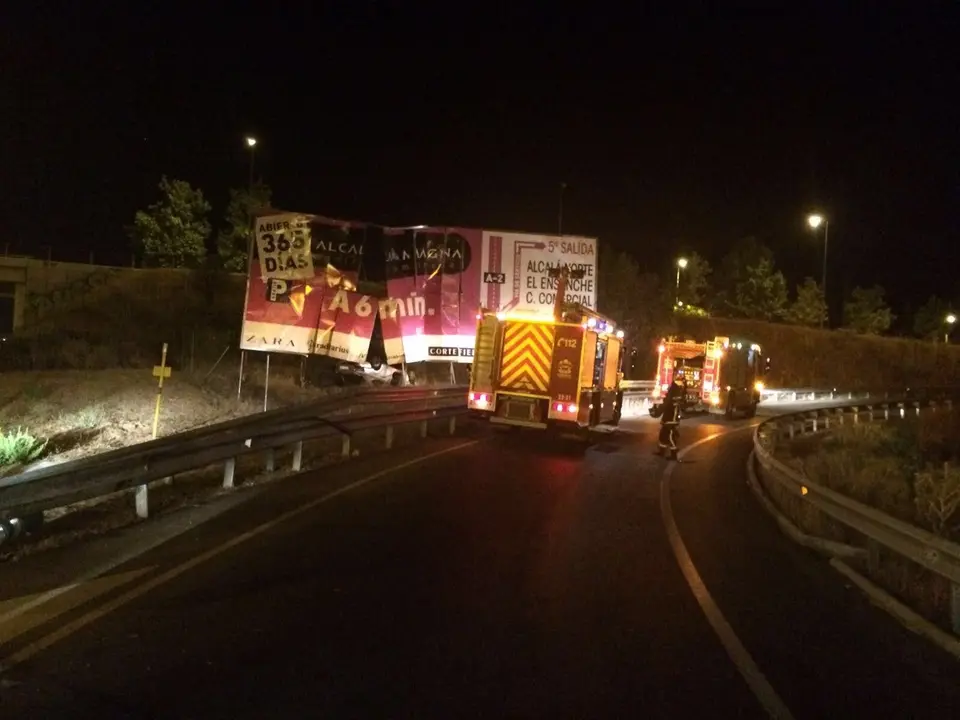 Un turismo se estrella contra una valla publicitaria en la A-2, Alcalá