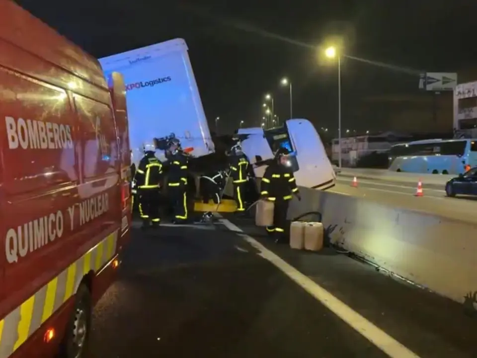 El siniestro no ha causado heridos y los Bomberos de la Comunidad de Madrid se han encargado de sanear la zona y de retirar el gasoil de la calzada.