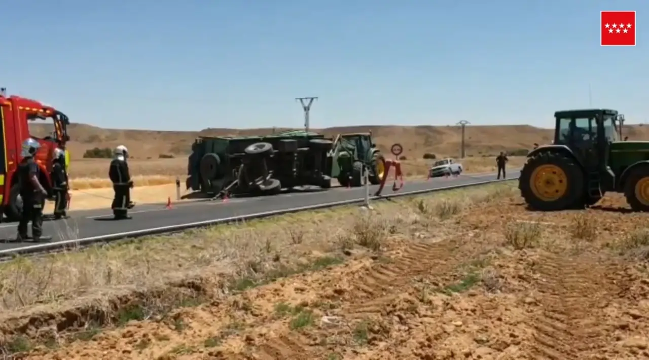 El remolque de un tractor cargado de arena ha volcado este lunes a la altura del kilómetro 2 de la M-118, en Alcalá de Henares, han informado a MiraCorredor fuentes del 112 de la Comunidad de Madrid.