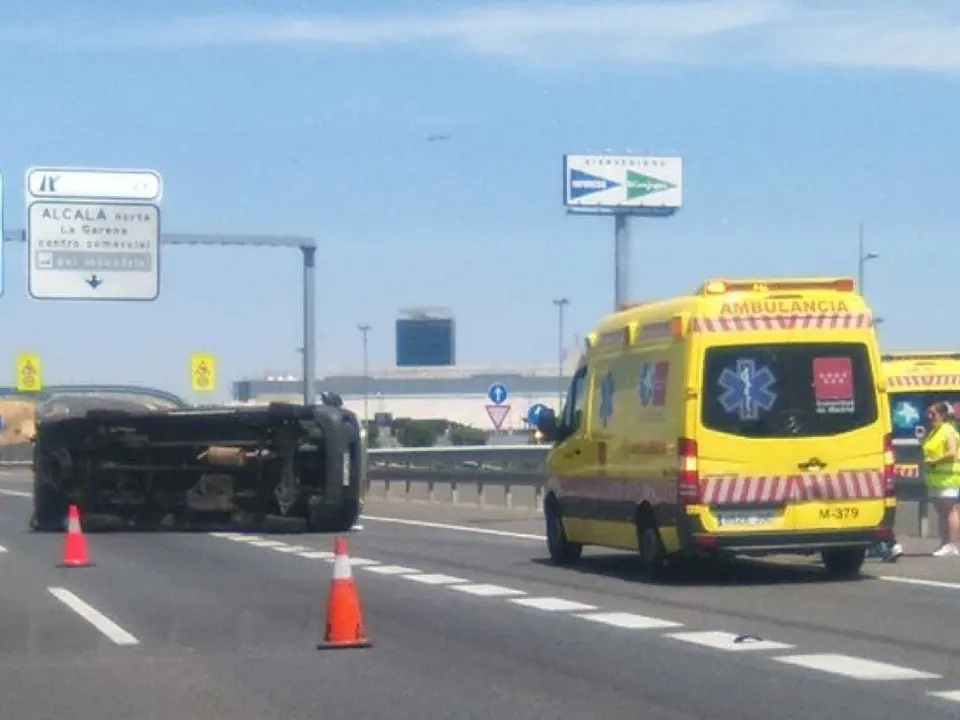 Una furgoneta ha volcado este sábado por la tarde en la A-2, por causas que se desconocen, a la altura de El Corte Inglés de Alcalá de Henares, en La Garena.