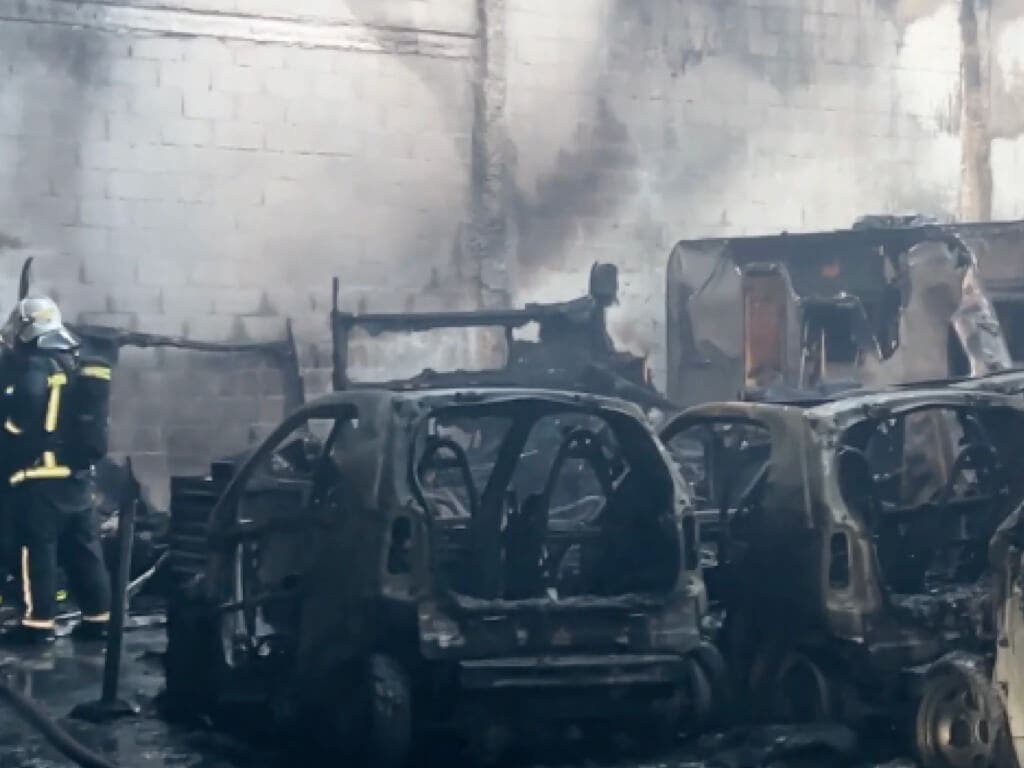 La nave está ubicada en la calle Garza de la localidad y en su interior han ardido un total de 10 turismos y tres autocaravanas por un fuego cuyas causas se desconocen.