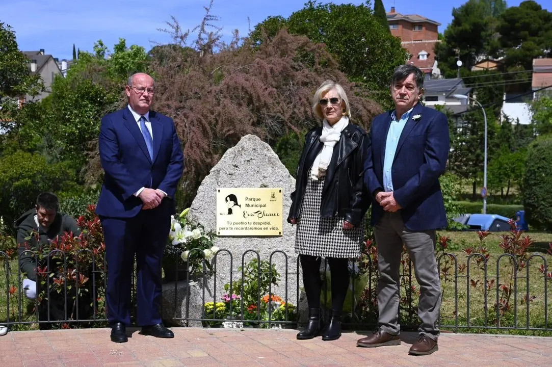 El alcalde, Fernando Romo, inauguró el nuevo monolito que se ha instalado en el parque Eva Blanco y descubrió la nueva placa junto a los padres de la joven, Manuel y Olga. La placa incluye un grabado de Eva, sonriendo y una frase.