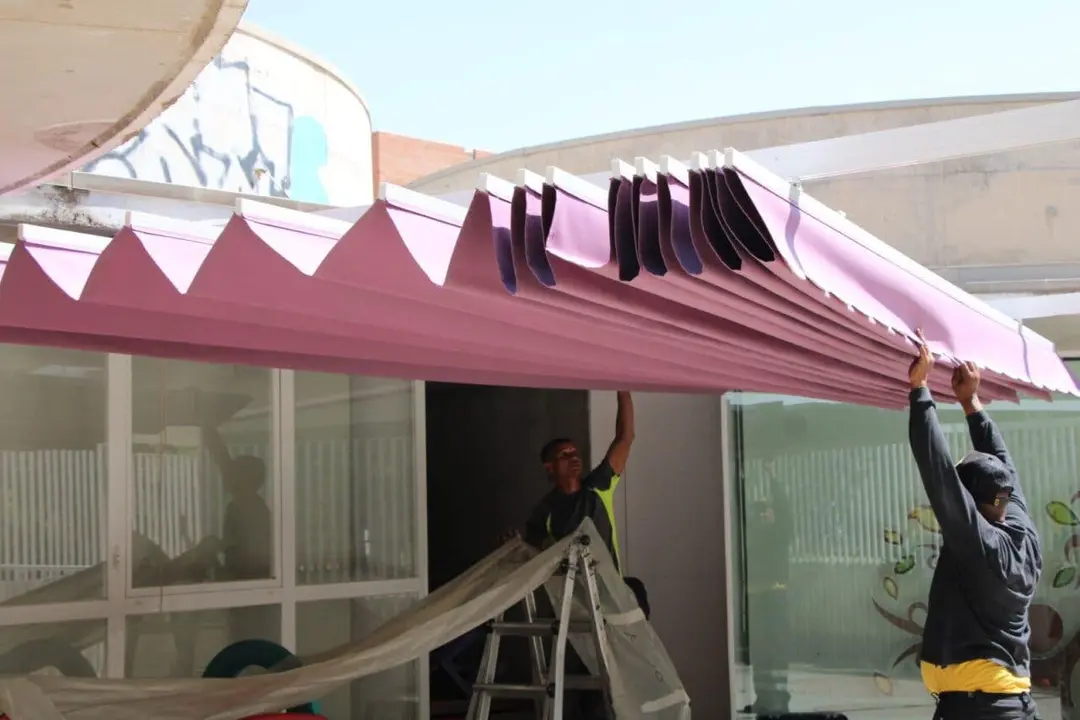 - Colocación de un nuevo toldo en un aula de 1-2 años.