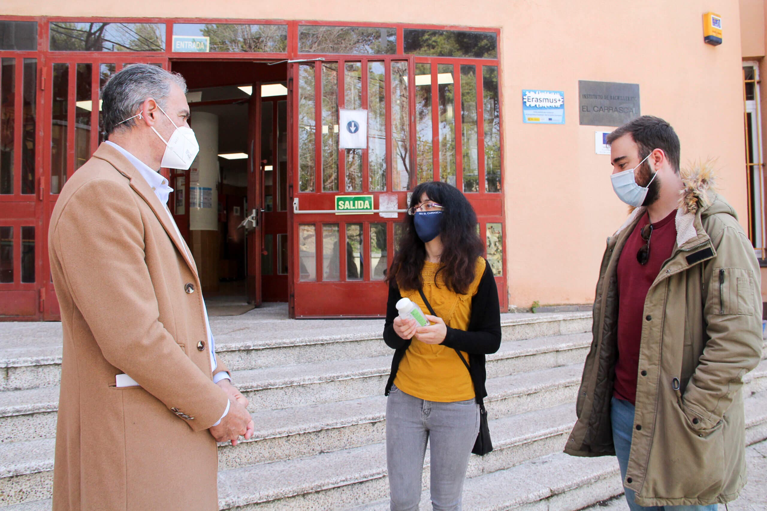 El Ayuntamiento de Arganda del Rey comenzó este viernes a repartir 6.624 unidades individuales de 200 ml. de gel hidroalcóholico en centros educativos. El concejal de Educación, Eugenio Dionisio, y el concejal de Juventud e Infancia, Luis Miguel Cuéllar, han visitado distintos centros educativos para facilitarles los geles.