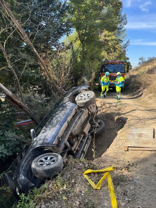 El accidente se ha producido poco antes del mediodía en el camino Valtierra, cuando el terreno ha cedido de forma repentina, provocando que el coche quedara volcado sobre su lado derecho.