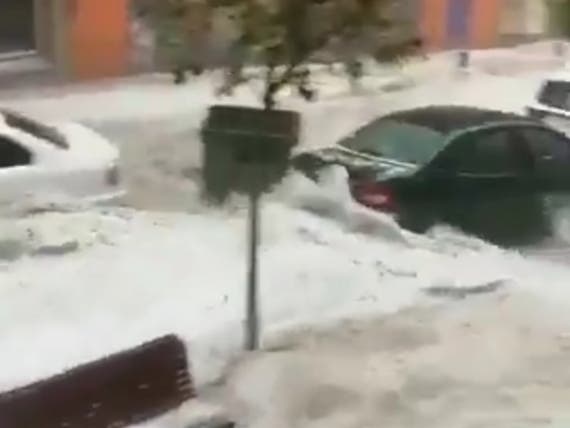 La tromba ha dejado calles y comercios anegados de agua y granizo.