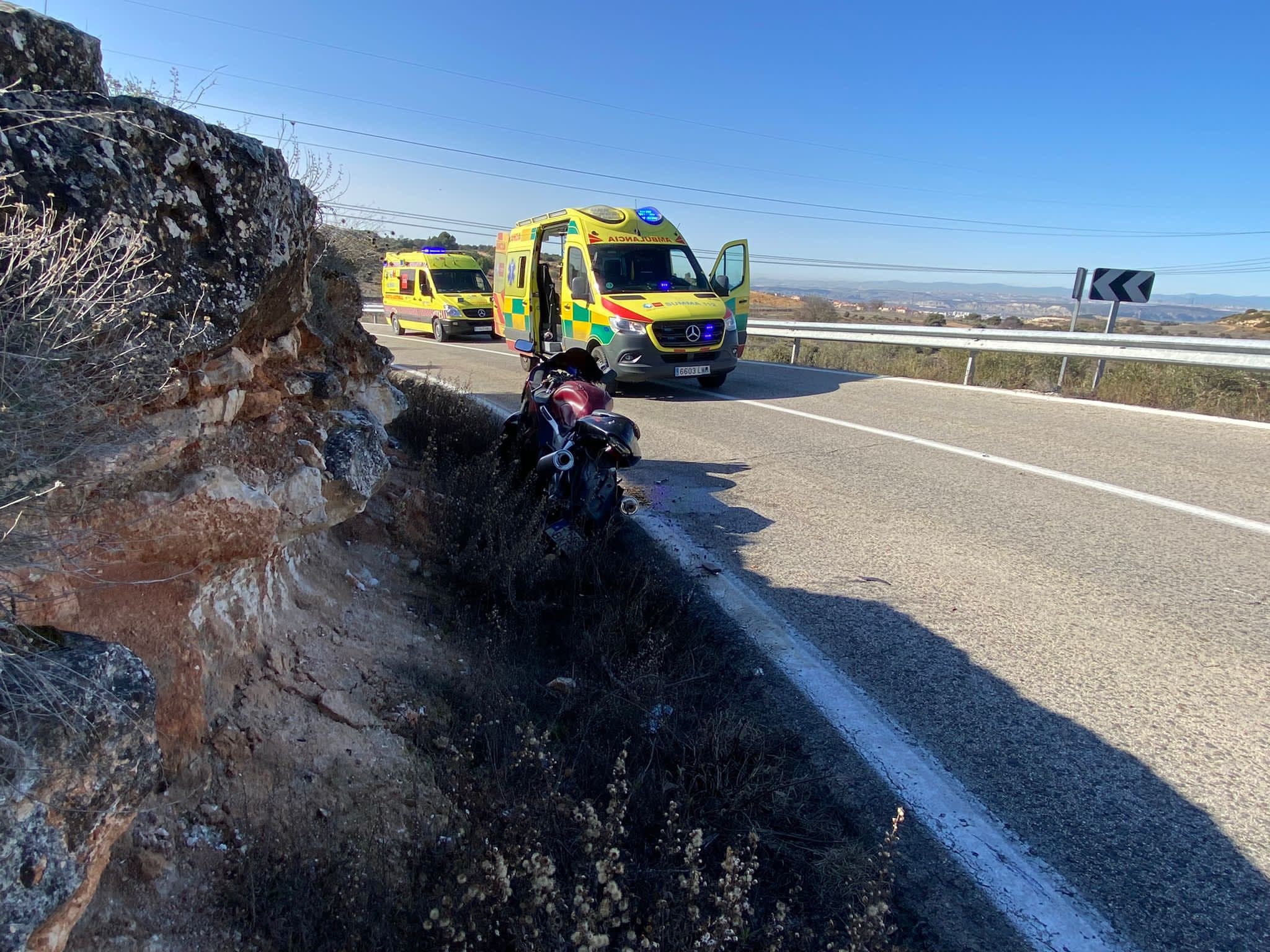 Los sanitarios del SUMMA, a su llegada, han comprobado que el motorista presentaba varios traumatismo, siendo el más grave uno torácico.