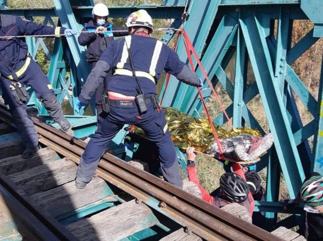 Un ciclista de 56 años ha resultado herido este lunes al caer entre las vías y las traviesas del Puente Verde ferroviario que cruza el río Jarama, en Arganda del Rey, ha informado el 112 de la Comunidad de Madrid.
