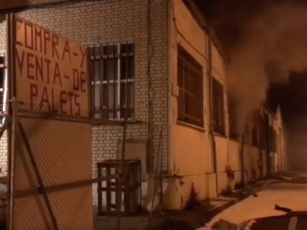 El fuego comenzó sobre las 22.30 horas en una nave que albergaba unos 5.000 metros cúbicos de palés de madera situada en la confluencia de la Avenida de Finanzauto con la Avenida de Madrid.