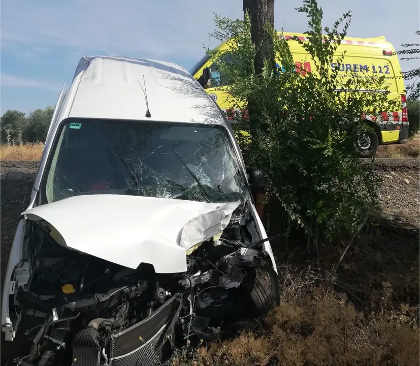 La furgoneta primero chocó contra un árbol y acabó estampándose contra otro, que frenó su recorrido, quedando el vehículo muy afectado por el impacto.