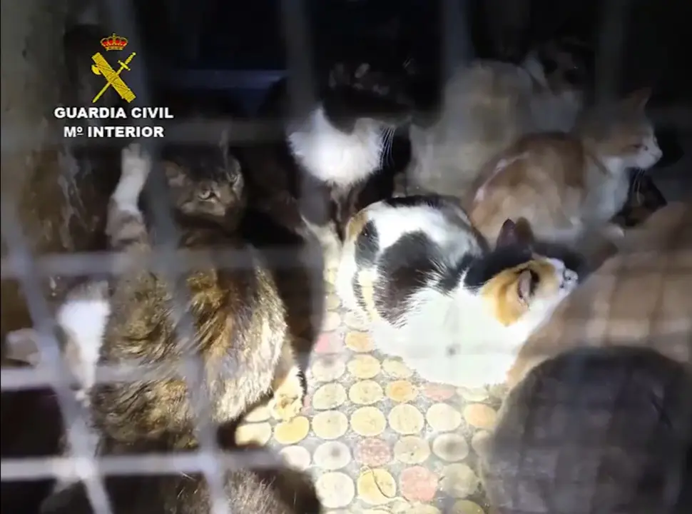 La Guardia Civil ha intervenido en Arganda del Rey una supuesta protectora de animales donde había más de 50 gatos domésticos en un pésimo estado, hacinados y en una condiciones higiénico-sanitarias deplorables.