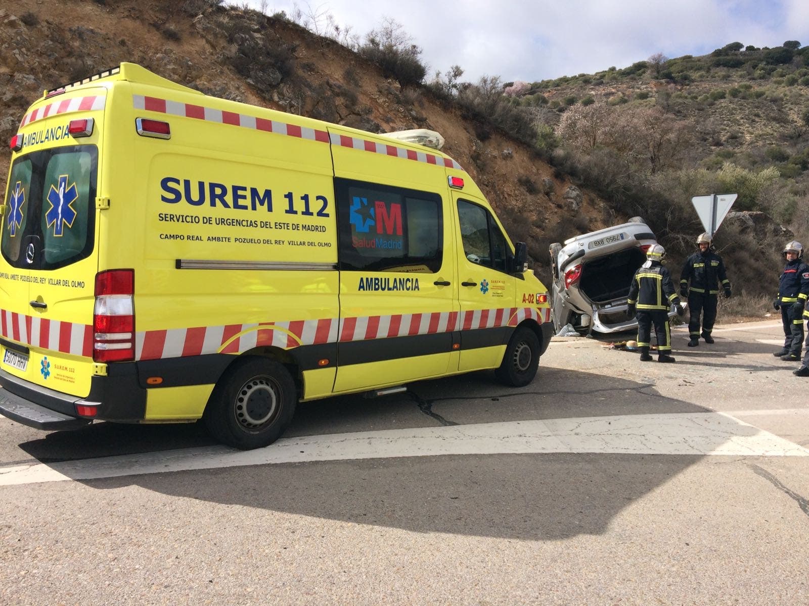 Los Bomberos de la Comunidad de Madrid también se han desplazado a la zona, aunque todos los ocupantes han podido salir del coche por su propio pie