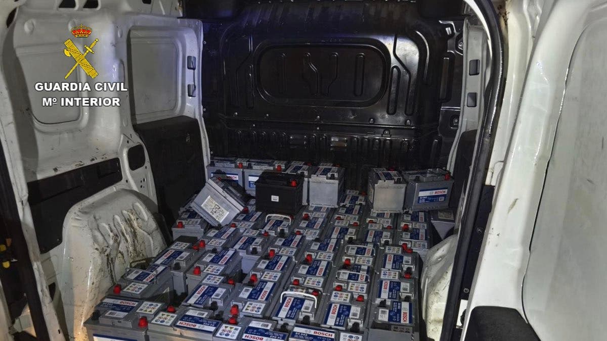 En el momento de la detención, los agentes recuperaron 55 baterías de vehículo, que los arrestados transportaban en la furgoneta y que presuntamente habían sido sustraídas del camión.