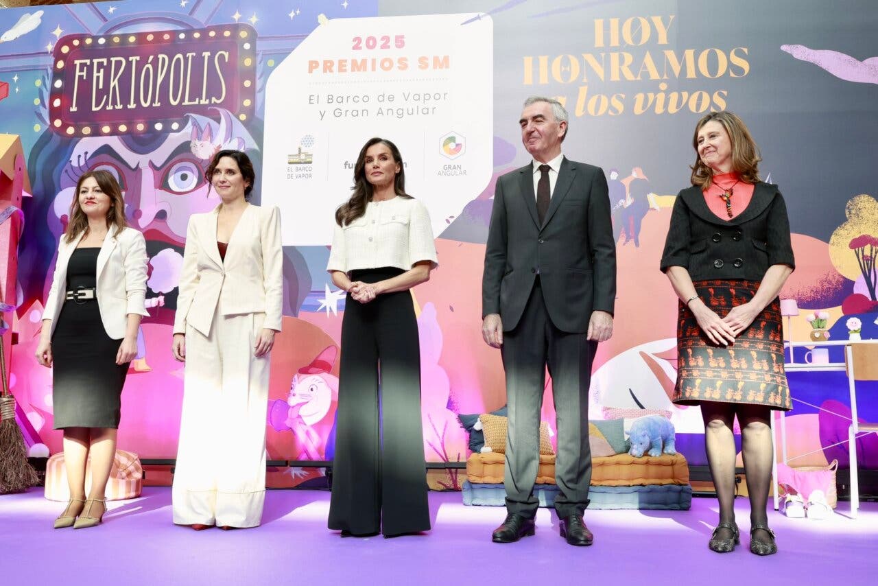 La Reina, gran defensora de la lectura entre los más jóvenes, ha presidido la entrega de unos galardones que este año han distinguido a Ledicia Costas, autora de Feriópolis, con el premio El Barco de Vapor, y a Marina Aguirre, que ha recibido el Gran Angular por Hoy honramos a los vivos, una novela sobre la amistad, la familia y el valor del servicio a los demás.