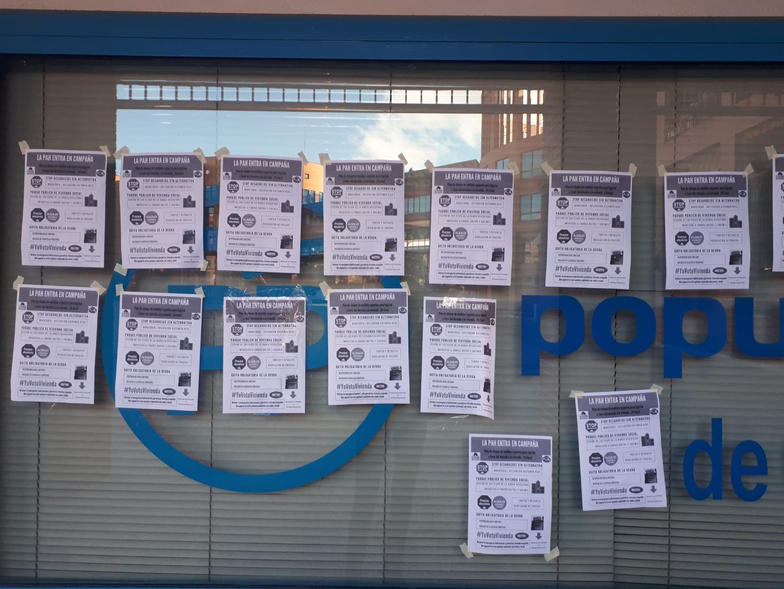 Becerra ha explicado que la sede de los populares cosladeños, ubicada en la Plaza Mayor, ha amanecido este miércoles con un centenar de pasquines pegados en la fachada y ventanas, en los que se puede leer «La PAH entra en campaña», en relación a la Plataforma de Afectados por la Hipoteca.