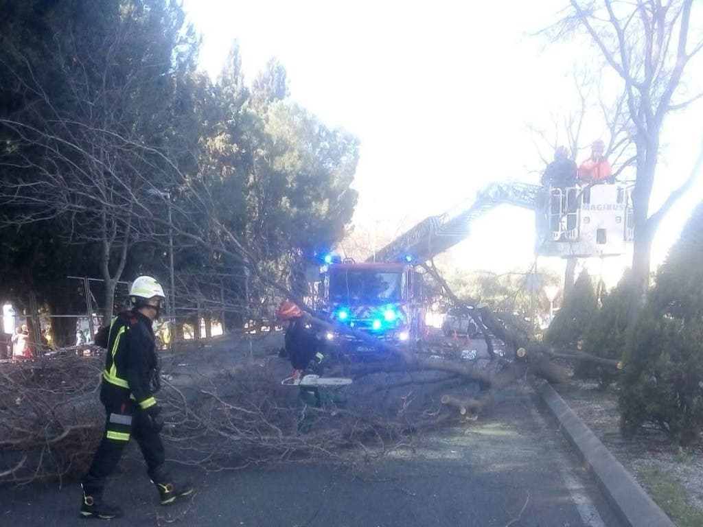 Hasta el lugar se trasladaron efectivos de los Bomberos de la Comunidad de Madrid para retirar el árbol de la vía, cortando diferentes ramas y haciendo uso de la autoescala.