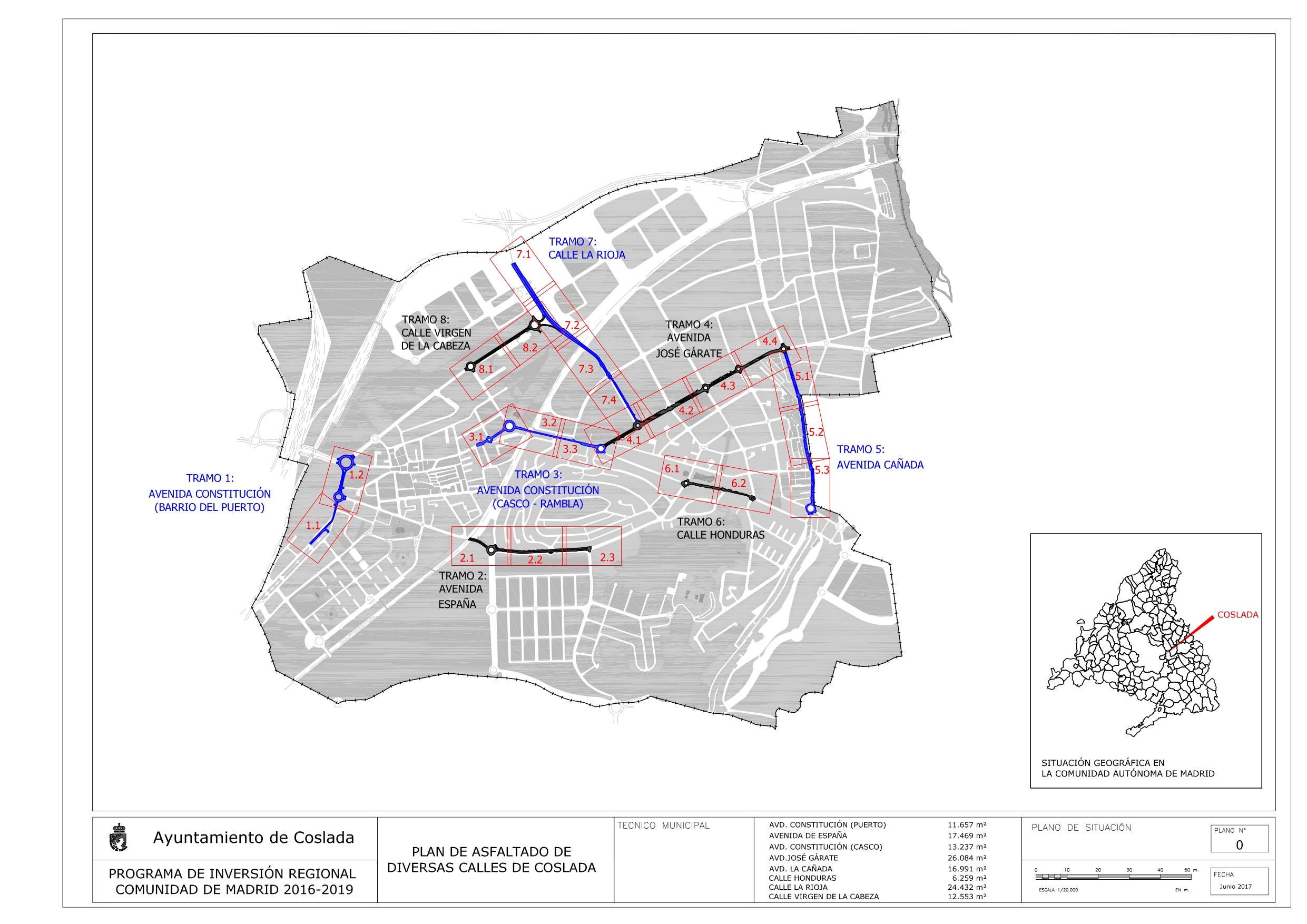 Las calles sobre las que se va a actuar son Rioja, José Gárate, Virgen de la Cabeza, Honduras, Avenida de la Constitución, Avenida de la Cañada y Avenida de España. Se van a rehabilitar en total más de 128.000 metros cuadrados de superficie que se encuentra en mal estado.