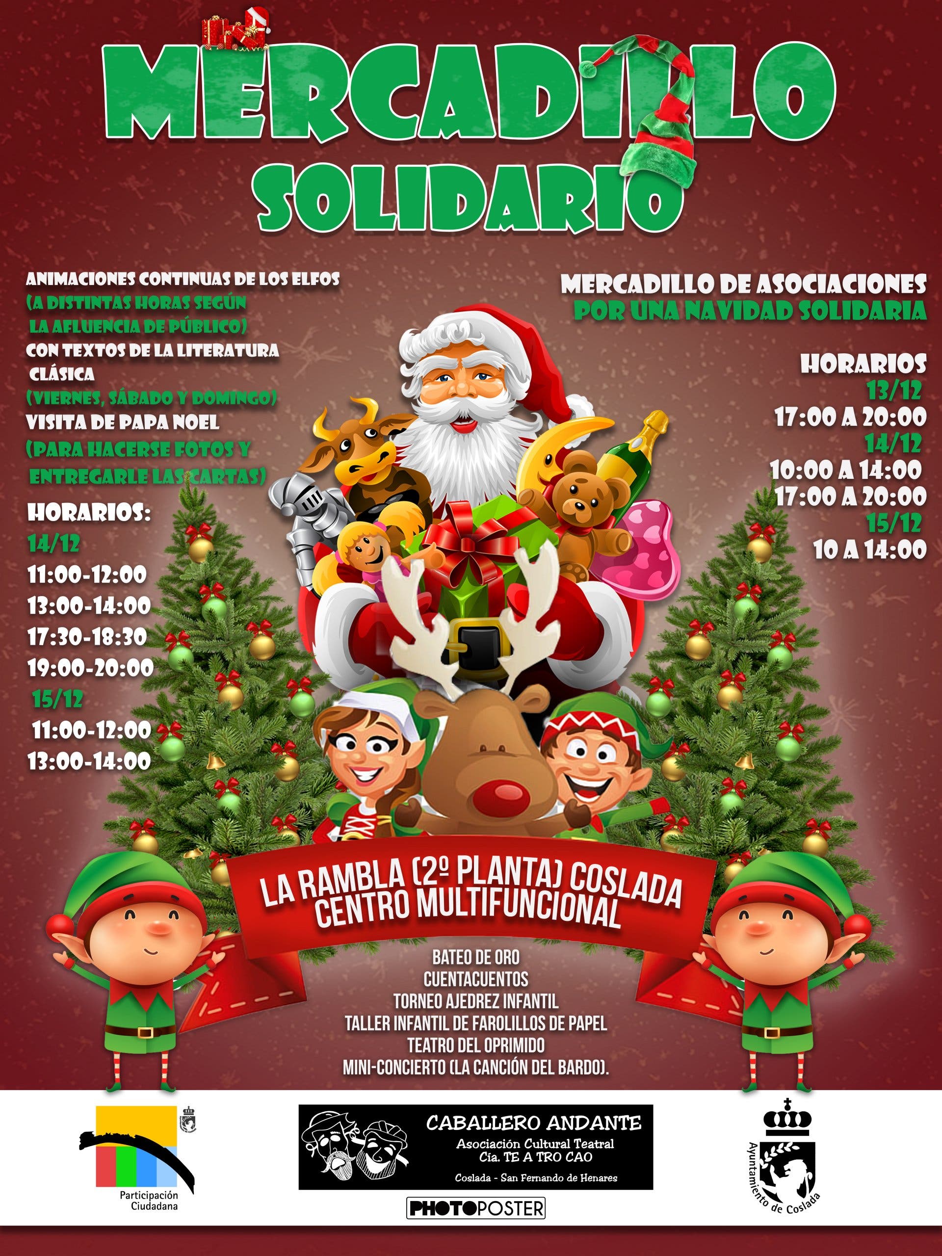 Desde este viernes y hasta el próximo domingo, la Concejalía de Participación Ciudadana, Cooperación y Atención a la Ciudadanía en colaboración con entidades de Coslada, organiza el primer Mercadillo de Asociaciones Por Una Navidad Solidaria.