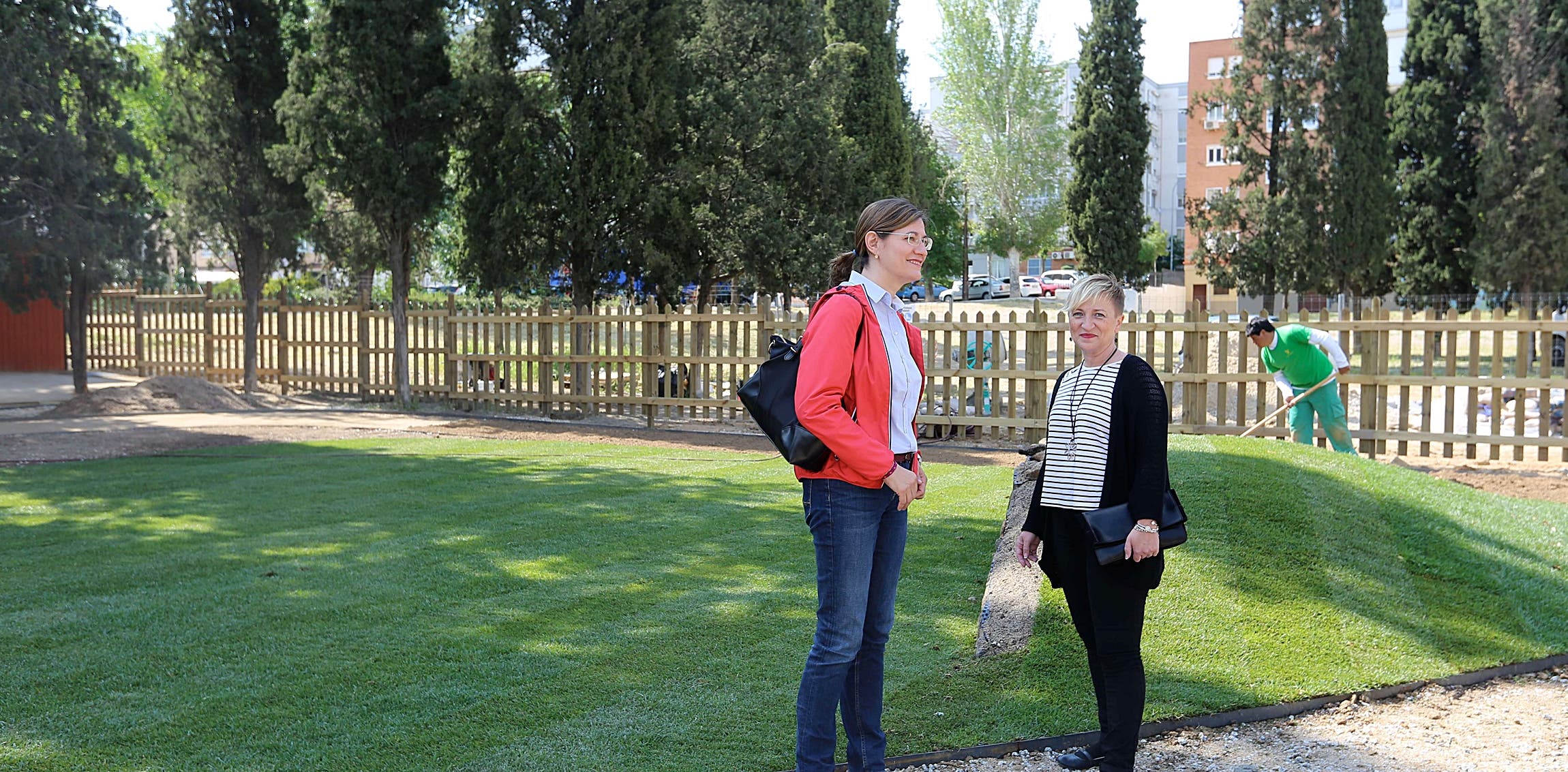 La concejala de Servicios Sociales, Mayores e Igualdad del Ayuntamiento de Coslada, Teresa González Ausín, y la edil de Urbanismo, Vías y Obras y Medio Ambiente, Charo Arroyo, han visitado este viernes las obras del Jardín Terapéutico que se está creando en la Avenida de la Constitución, en La Rambla.
