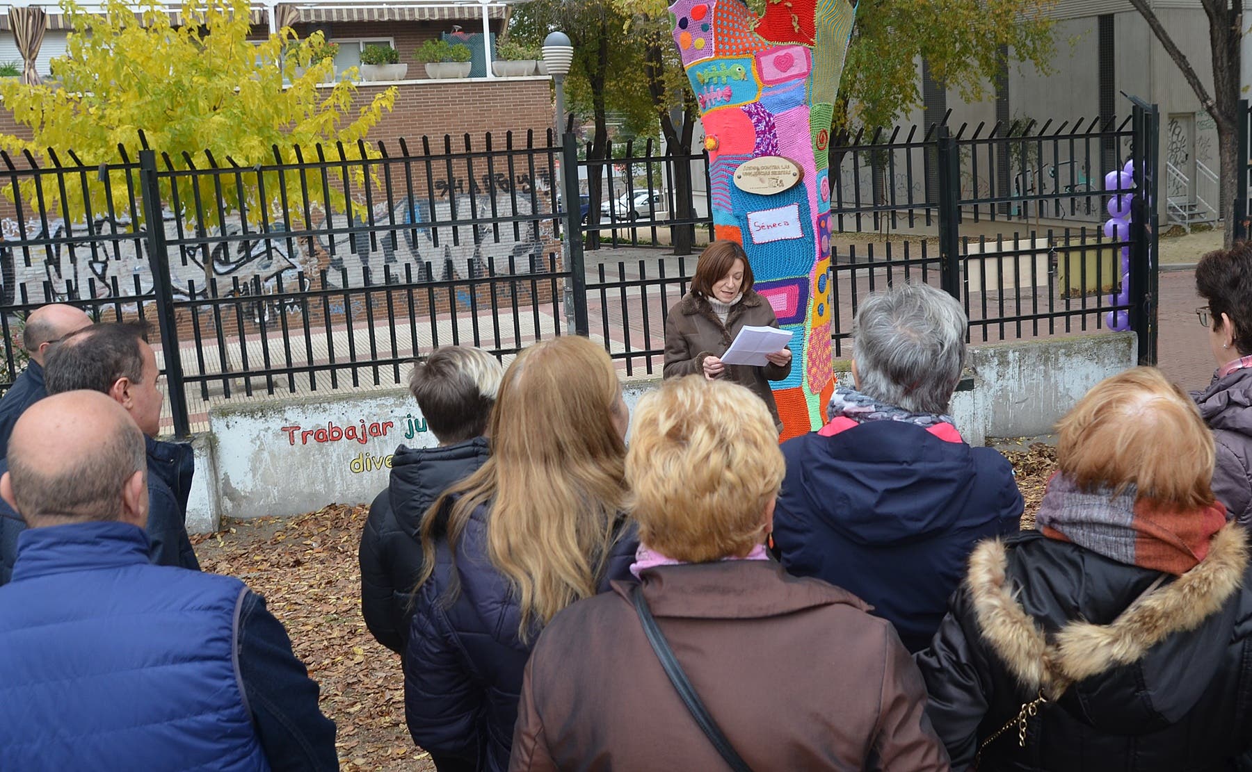 Tal y como indicaron durante la inauguración de este sábado representantes del AMPA, la intención final es que este trabajo de tejer se extienda a más árboles del patio del colegio.