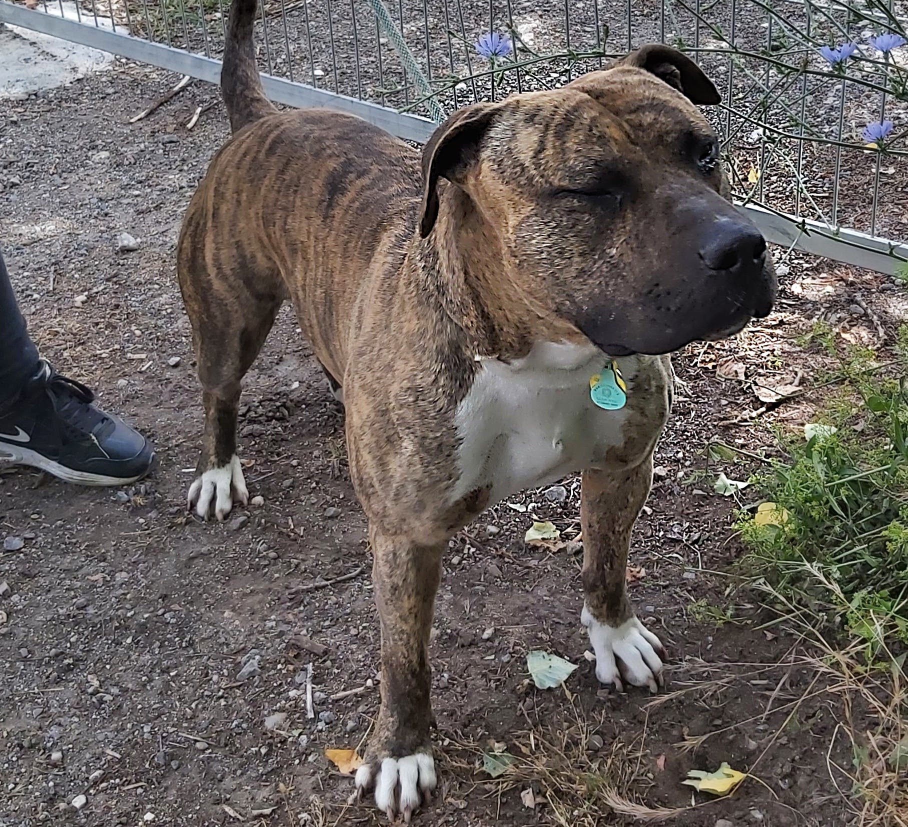 El Ayuntamiento de Coslada, junto con el Centro de Protección Animal, está tramitando el cambio de titularidad de Oso, un perro de raza pitbull que fue rescatado por la Policía Local cuando su dueño trataba de ahogarlo en plena calle, como contamos aquí en MiraCorredor.