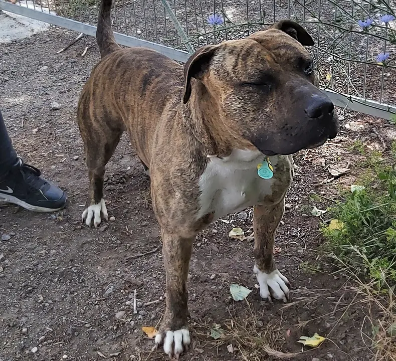 El Ayuntamiento de Coslada, junto con el Centro de Protección Animal, está tramitando el cambio de titularidad de Oso, un perro de raza pitbull que fue rescatado por la Policía Local cuando su dueño trataba de ahogarlo en plena calle, como contamos aquí en MiraCorredor.