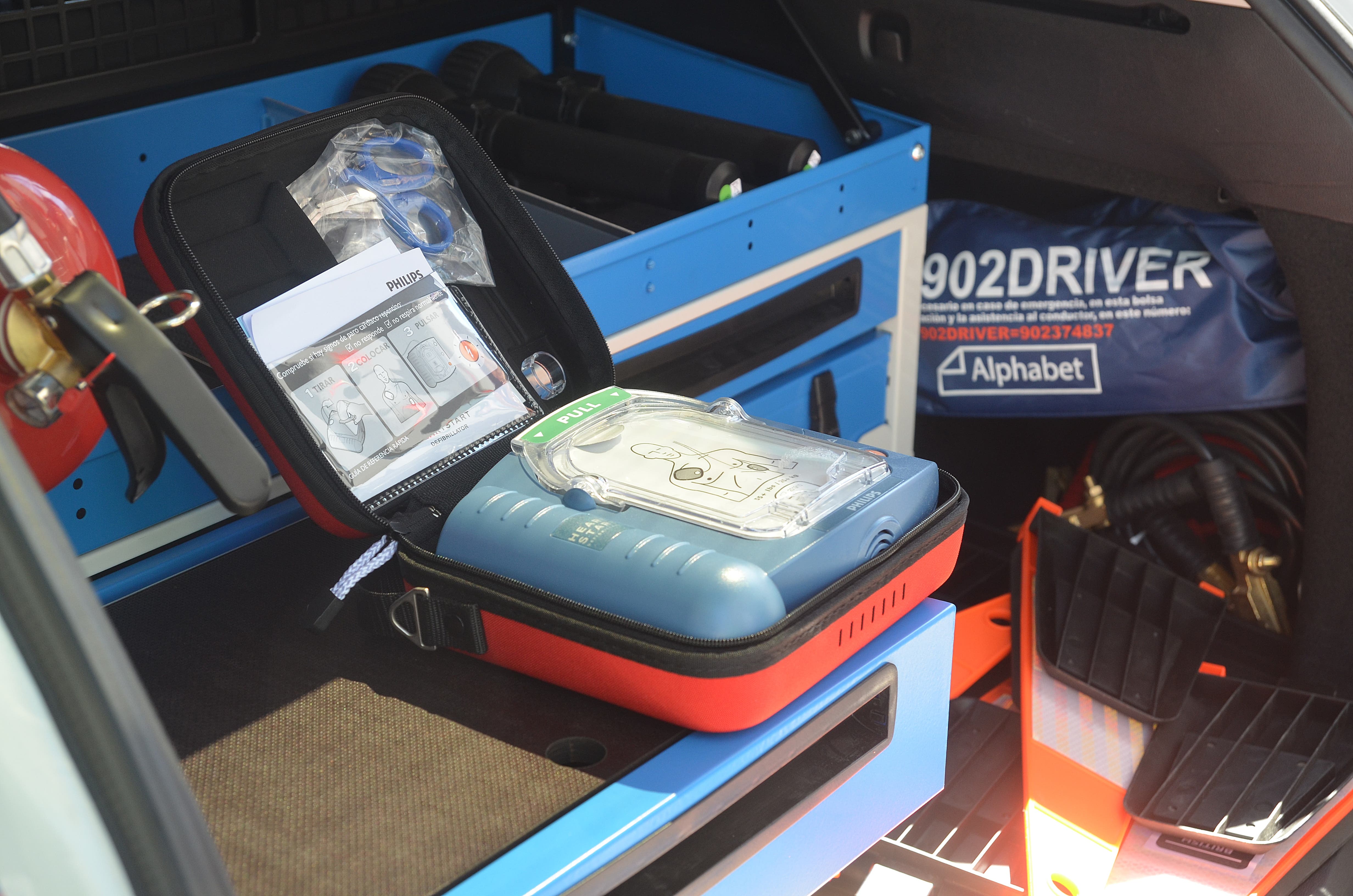 Entre ese equipamiento destaca, como novedad, la incorporación en cada uno de los cuatro nuevos vehículos radiopatrulla de los mencionados desfibriladores (para adultos y menores), aparatos que quedan perfectamente integrados en el mobiliario modular con cajones, instalados en los respectivos maleteros de los vehículos para facilitar el trabajo de los agentes, especialmente en los servicios de emergencia.