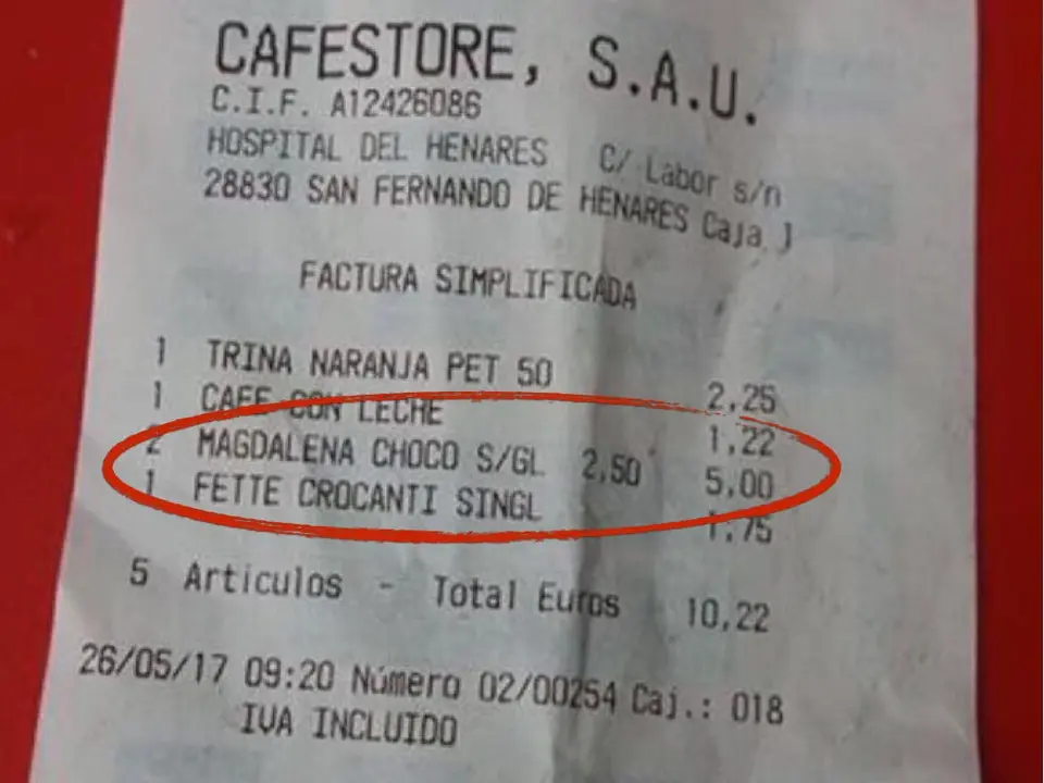 Llama la atención, como ella misma resaltaba, el precio de las magdalenas. Pero llama todavía más la atención al tratarse de la cafetería de un hospital, y máxime, cuando estamos hablando de un hospital público, el Hospital del Henares.