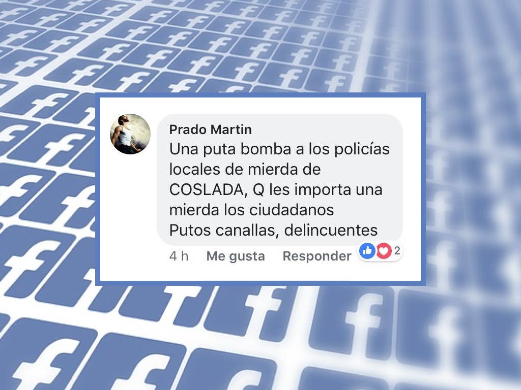El comentario, escrito desde un perfil llamado Prado Martin, decía: «Una puta bomba a los policías locales de mierda de Coslada, que les importa una mierda los ciudadanos. Putos canallas, delincuentes».