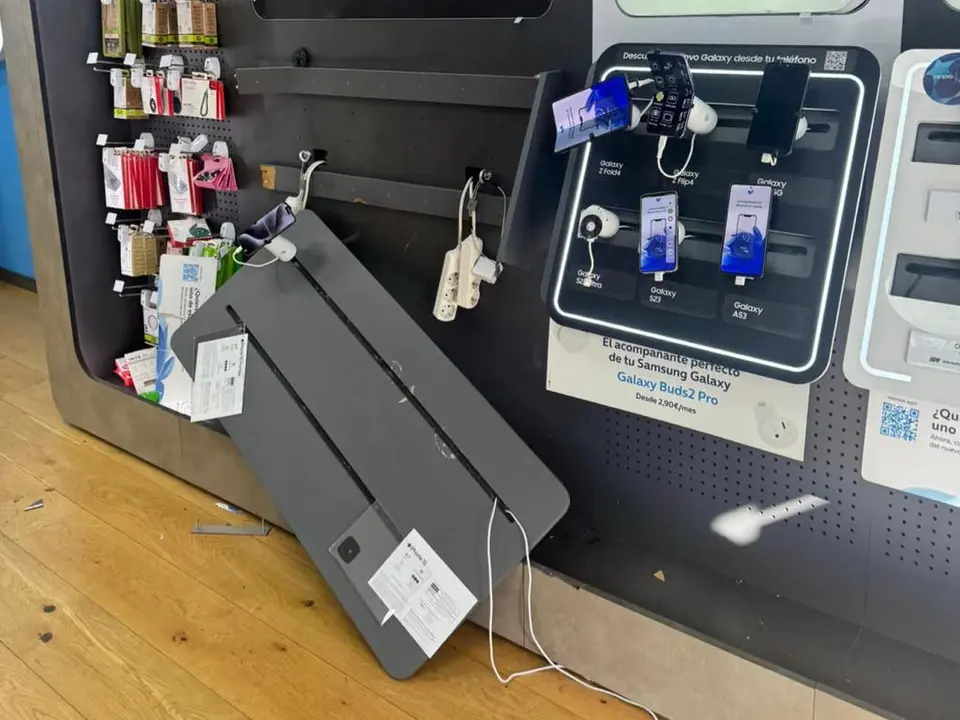 Los cuatro menores detenidos arrancaron los teléfonos de los expositores del establecimiento, donde estaban anclados en los soportes de seguridad antirrobo. Arrancaron los soportes quedando una parte pegada a los teléfonos y provocando importantes daños, como se puede ver en las imágenes publicadas por el Consistorio.