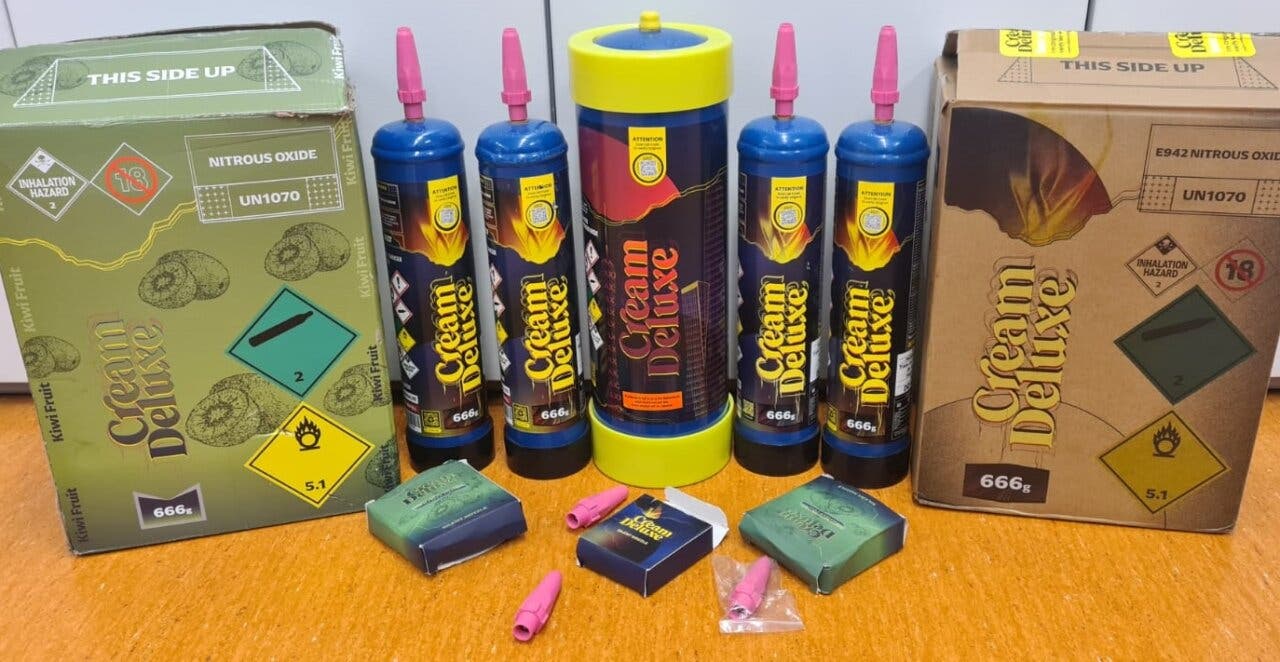 Todas las bombonas intervenidas fueron depositadas en dependencias de la Policía Local. Este tipo de gas normalmente se presenta en pequeñas bombonas a presión con un aplicador y globos. Su consumo se realiza mediante inhalación directa del gas del interior de los globos previamente hinchados con la bombona y produce efectos analgésicos y anestésicos, siendo muy nocivo para la salud.