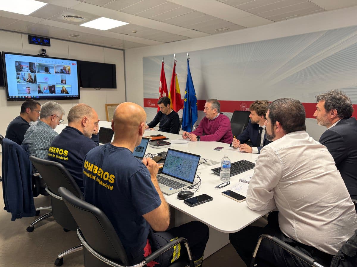El consejero de Medio Ambiente, Agricultura e Interior de la Comunidad de Madrid, Carlos Novillo, junto a los responsables de la Agencia de Seguridad y Emergencias Madrid 112 (ASEM 112), ha mantenido esta tarde una reunión telemática con alcaldes de 20 municipios de las zonas de más riesgo.
