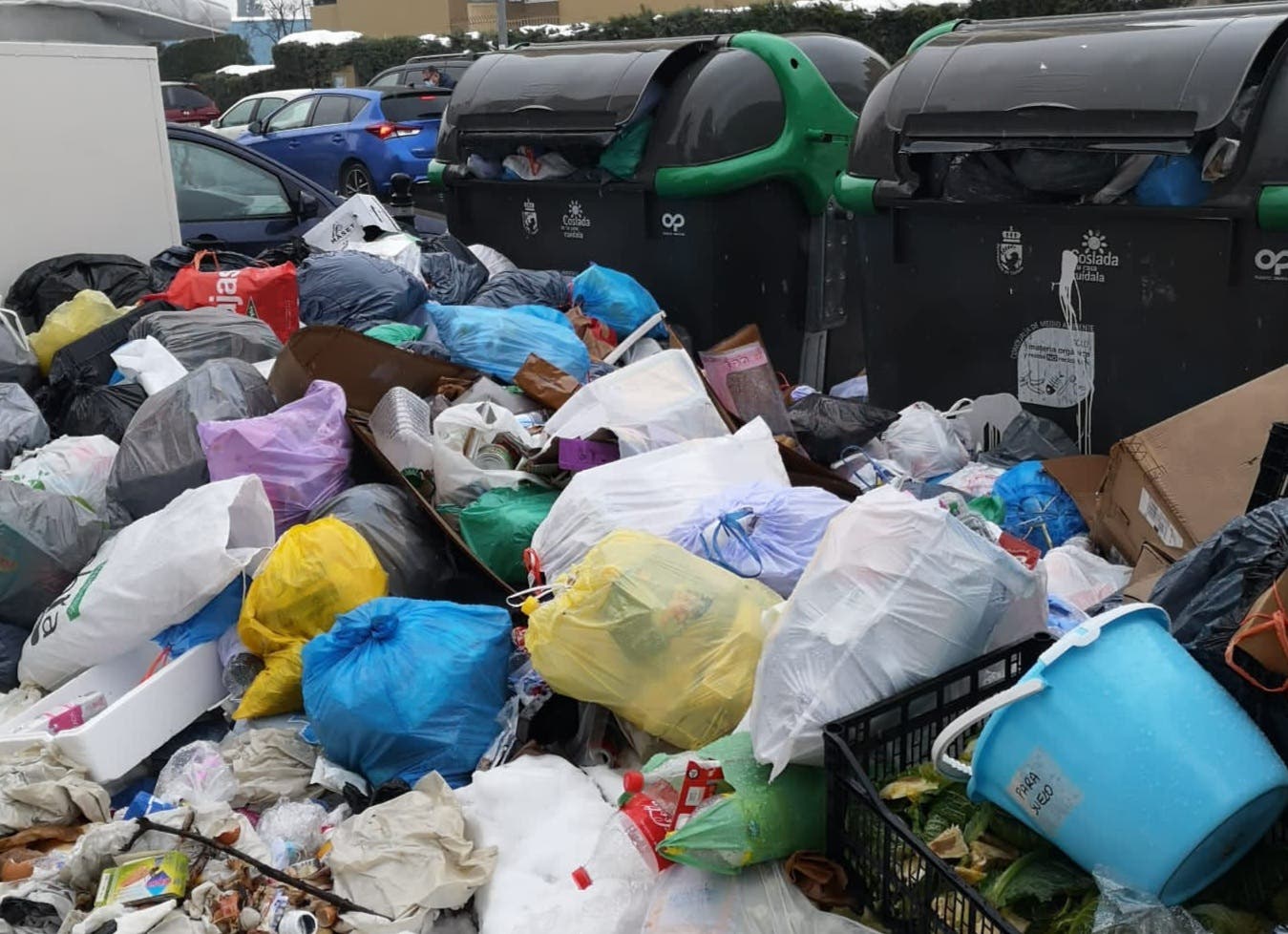 Varios vecinos de Coslada denuncian que la basura sigue amontonada junto a los contenedores dos semanas después del temporal Filomena.