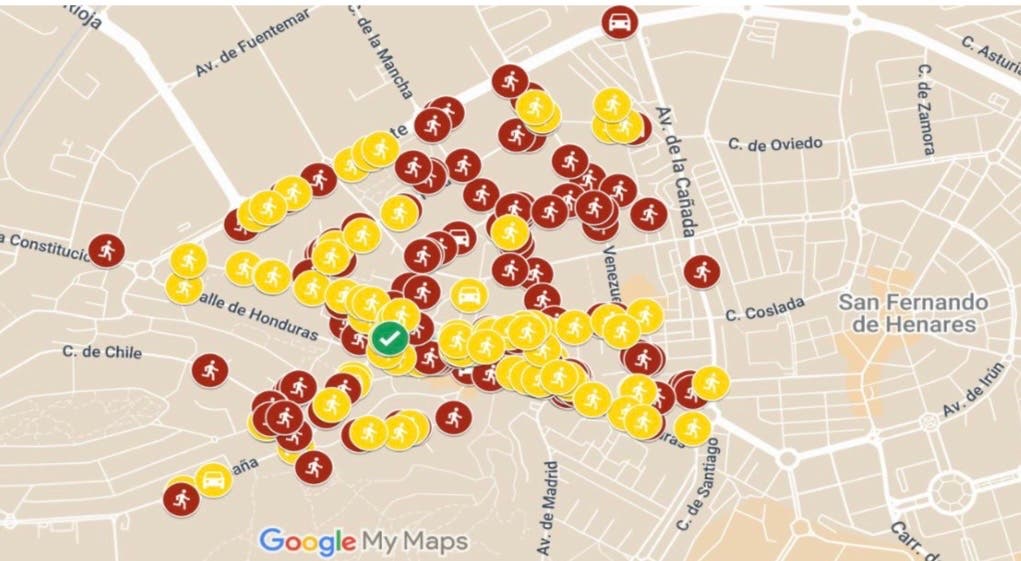 El grupo de trabajo de la Asociación de Vecinos de Valleaguado ha elaborado un mapa detallado de baches y desperfectos en el barrio. En total, se han localizado, fotografiado y georreferenciado más de 200 incidencias en aceras y calzadas.