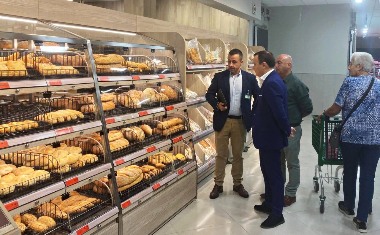El alcalde de Coslada, Ángel Viveros, acompañado por el concejal delegado de Política Territorial y Educación, José Sousa, ha visitado esta mañana las instalaciones recientemente renovadas de la superficie que Mercadona tiene en la Avenida de España de la ciudad.