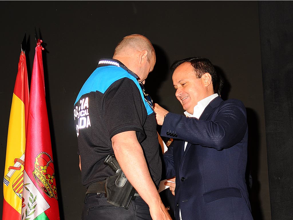 La medalla al mérito profesional ha sido para el policía Alejandro Yebes mientras que la medalla de la Policía Local de Coslada ha recaído este año en Miguel Ángel Velasco por su acción de rescate de dos personas atrapadas en un vehículo dentro de un túnel anegado por el agua el 7 de julio de 2017.