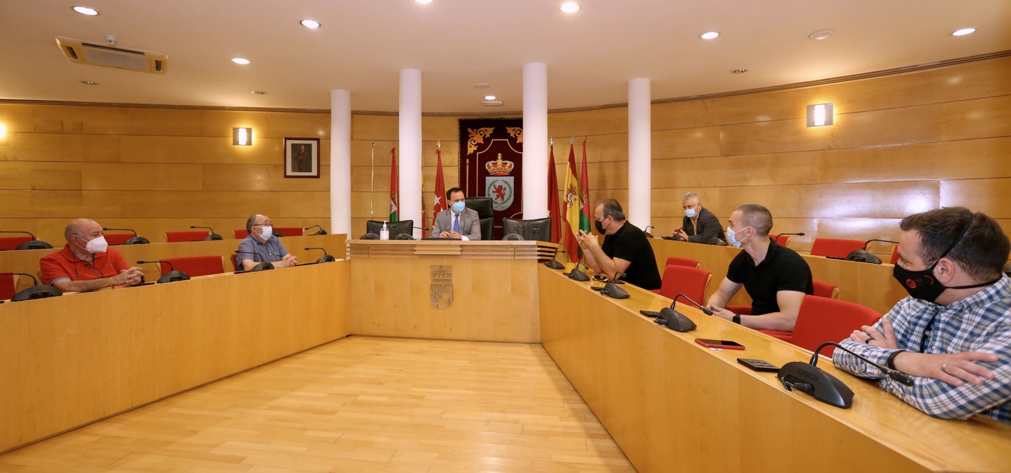 El alcalde de Coslada, Ángel Viveros, acompañado por el concejal de Desarrollo Económico y Empleo, Fernando Romero, ha recibido esta mañana en el Salón de Plenos del Ayuntamiento a una representación de los trabajadores de la empresa MAN Truck & Bus Iberia ubicada en la Avenida de la Cañada de la localidad. También ha participado una delegación del sindicato UGT, con su secretario comarcal, Jesús La Roda, y el responsable de Automoción de FICA UGT, Juan Manuel Gómez.