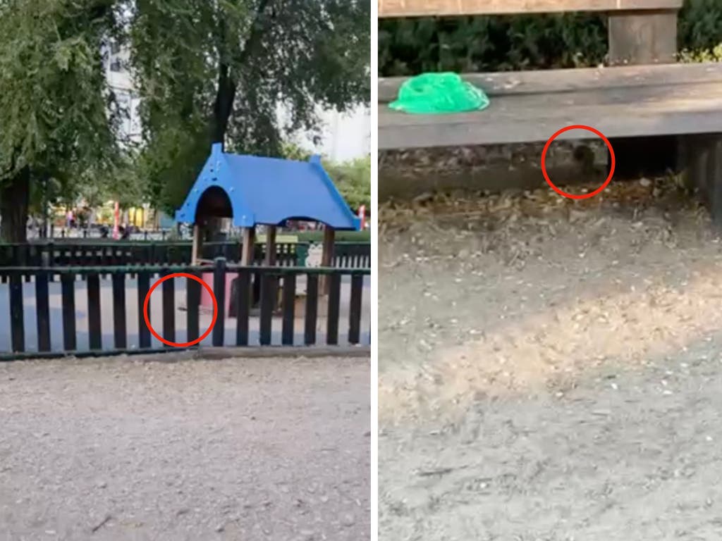 Las imágenes revelan la presencia de roedores en una zona infantil y entre los bancos a plena luz del día.