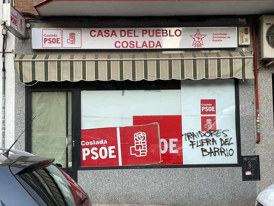 Realizan una pintada en la sede del PSOE de Coslada: «Traidores, fuera del barrio»