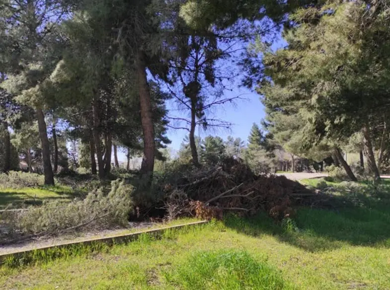 Restos de poda sin recoger en Coslada tres meses después de Filomena
