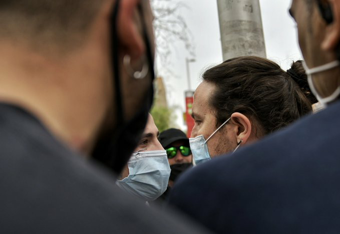 Tenso enfrentamiento entre Pablo Iglesias y unos neonazis en Coslada
